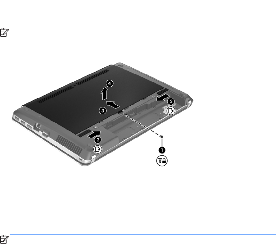 3. Lükake hooldusluuki arvuti esikülje poole (3) ja tõstke arvutilt maha (4).