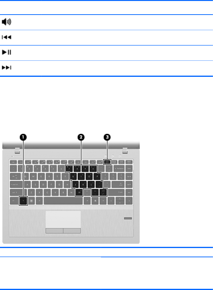 fn + f10 Възпроизвежда предишен запис на аудио компактдиск или предишен раздел на DVD или BD