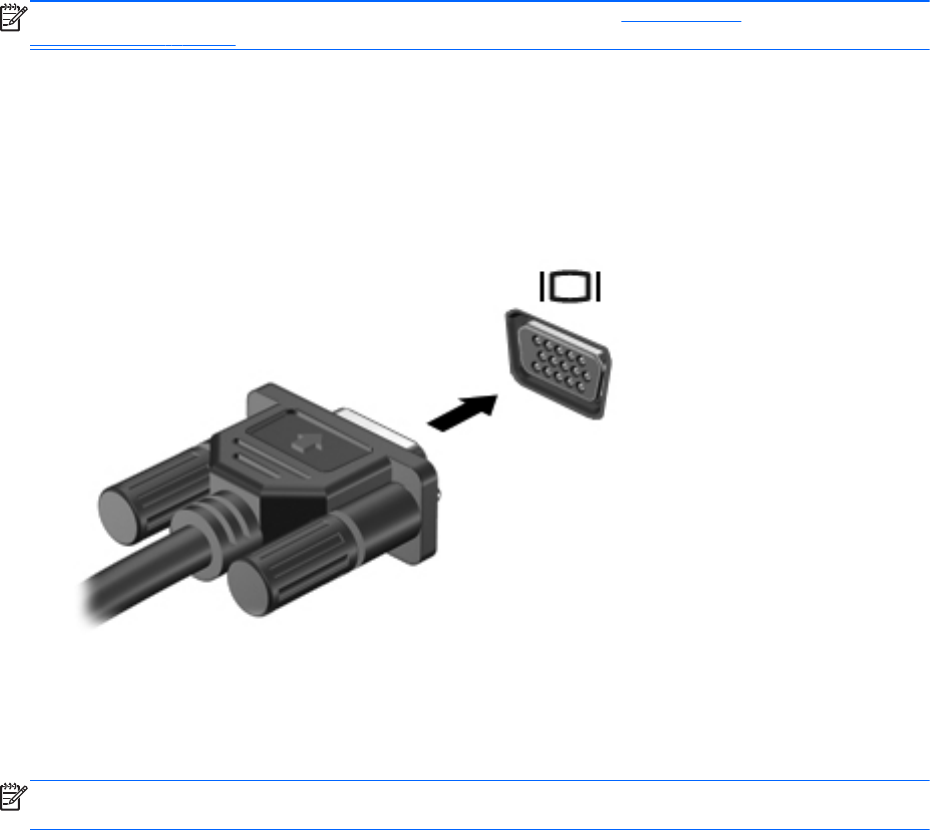 VGA megjelenítőeszköz csatlakoztatásához csatlakoztassa az eszköz kábelét a monitorporthoz.