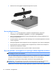 3. Kantel de accu omhoog (2) en verwijder deze (3) uit de computer.