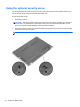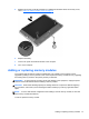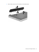 4. Align the tabs on the access cover with the latches on the computer (1), then slide the cover in