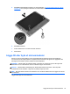 b. Sätt i minnesmodulen så att den lutar 45 grader mot ytan på minnesmodulutrymmet. Tryck