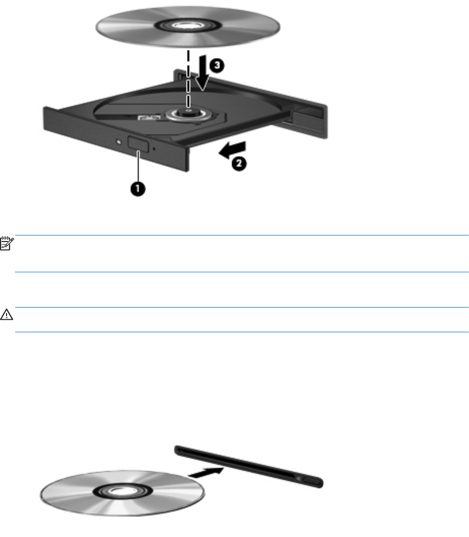 5. Nežno potisnite disk (3) na vreteno pladnja, da se zaskoči.