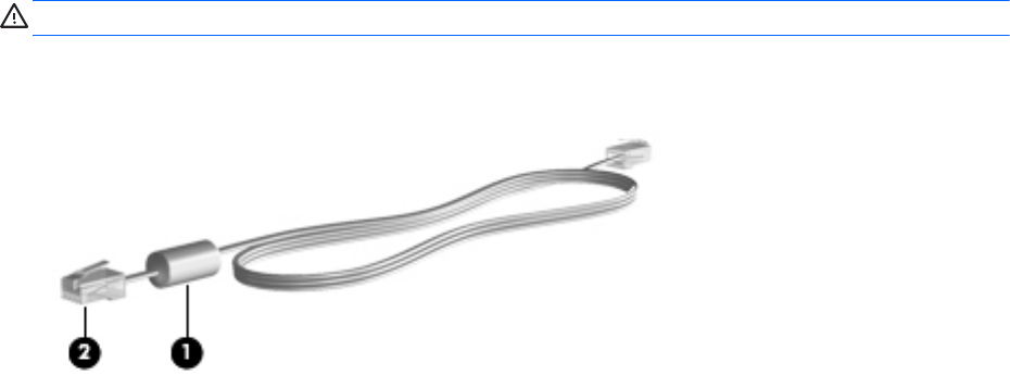 如果數據機纜線含有可防止電視和無線電接收干擾的雜訊抑止迴路 (1),請將纜線的迴路端 (2) 朝向電