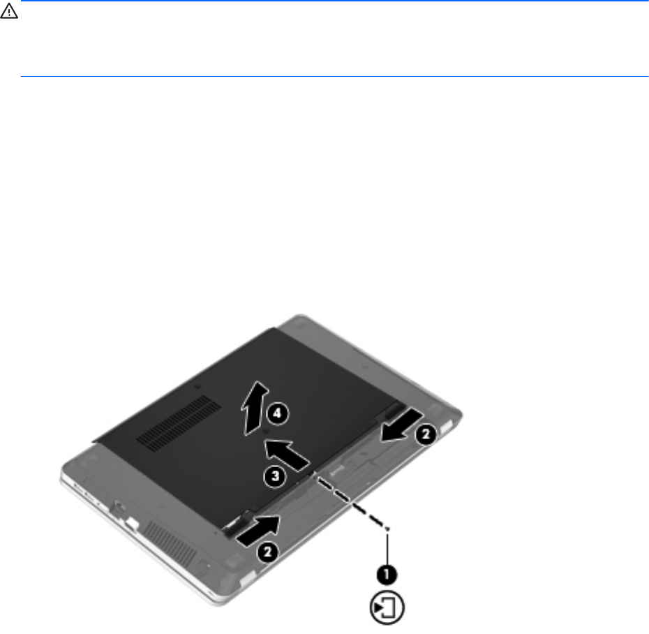 6. 將存取蓋向後推 (3),然後將其從電腦卸下 (4)。