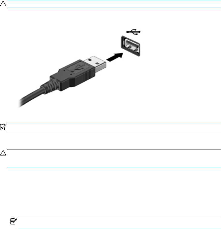若要將 USB 裝置連接至電腦,請將裝置的 USB 纜線連接至 USB 連接埠。