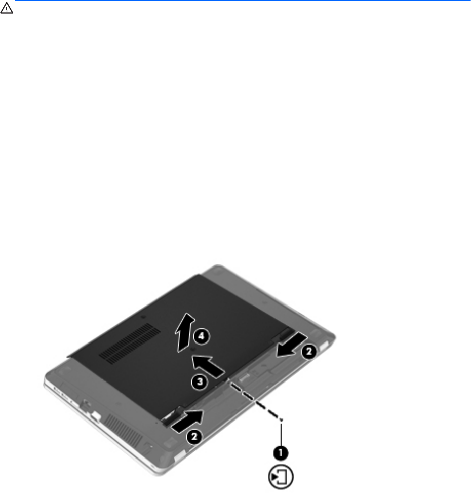 6. Työnnä suojakantta taaksepäin (3) ja nosta se sitten pois tietokoneesta (4).