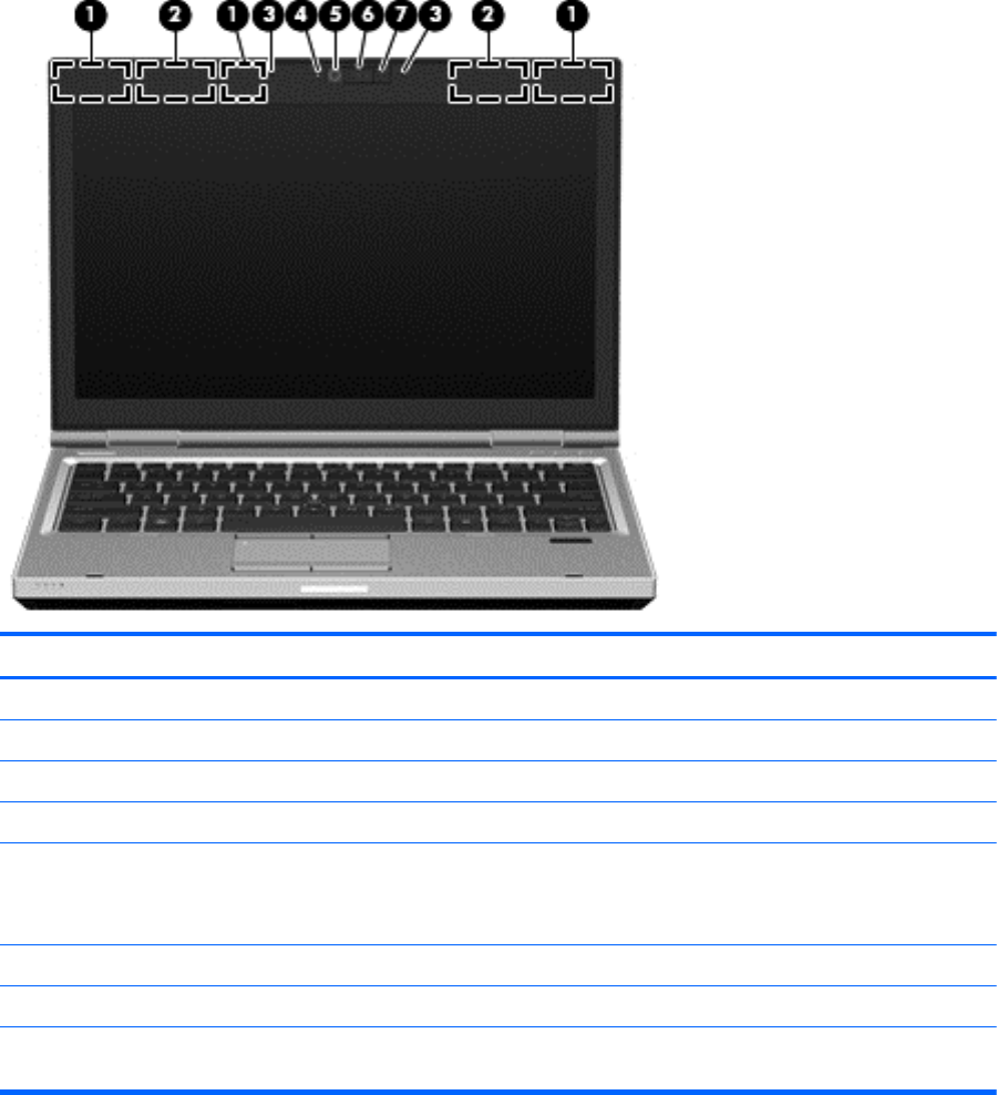 WWAN 天線 (2)* 傳送及接收無線訊號,以和無線廣域網路 (WWAN) 通訊。
