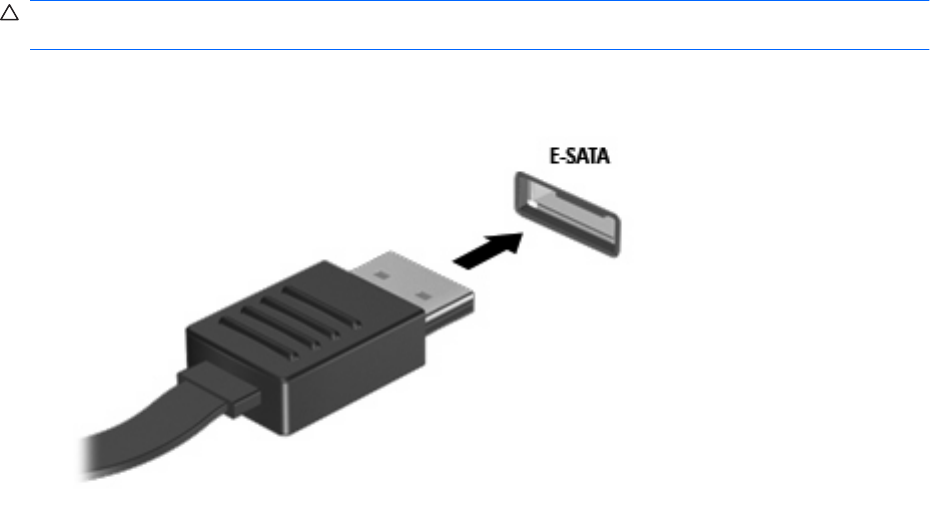 VIGYÁZAT! A lehető legkisebb erő kifejtésével csatlakoztassa az eSATA-eszközt, hogy az eSATA-