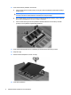 13. Kiristä muistimoduulipaikan kannen ruuvi (3). 14. Aseta akku paikalleen. 15. Käännä tietokone ylösalaisin ja liitä ulkoinen virtalähde ja ulkoiset laitteet. 16. Käynnistä tietokone. Päämuistimoduulipaikassa olevan muistimoduulin päivittäminen Päivitä päämuistimoduulipaikassa oleva muistimoduuli seuraavasti: 1. Tallenna työtiedostot. 2. Sammuta tietokone. Jos et ole varma, onko tietokoneen virta katkaistu vai onko tietokone lepotilassa, käynnistä tietokone painamalla virtapainiketta.