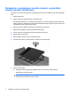 13. Dokręć śrubę pokrywy komory modułu pamięci (3). 14. Włóż baterię na miejsce. 15. Obróć komputer prawą stroną do góry a następnie podłącz zewnętrzne zasilanie i urządzenia zewnętrzne. 16. Włącz komputer. Dodawanie modułu pamięci do podstawowego gniazda modułu pamięci Aby dodać moduł pamięci do podstawowego gniazda modułu pamięci, wykonaj następujące kroki: 1. Zapisz swoją pracę. 2. Wyłącz komputer.