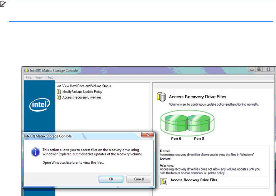 NOTA: Quando você acessa arquivos na unidade recuperação, o status da unidade de recuperação