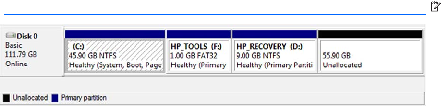 Management) ةرادإ صاﺮﻗﻷا (ﺔﺡﺎﺴﻤﻟا ﺮﻴﻏ ﺔﺼﺼﺨﻤﻟا ﺔﺙﻼﺙو مﺎﺴﻗأ—)C: (وHP_TOOLS وHP_RECOVERY.