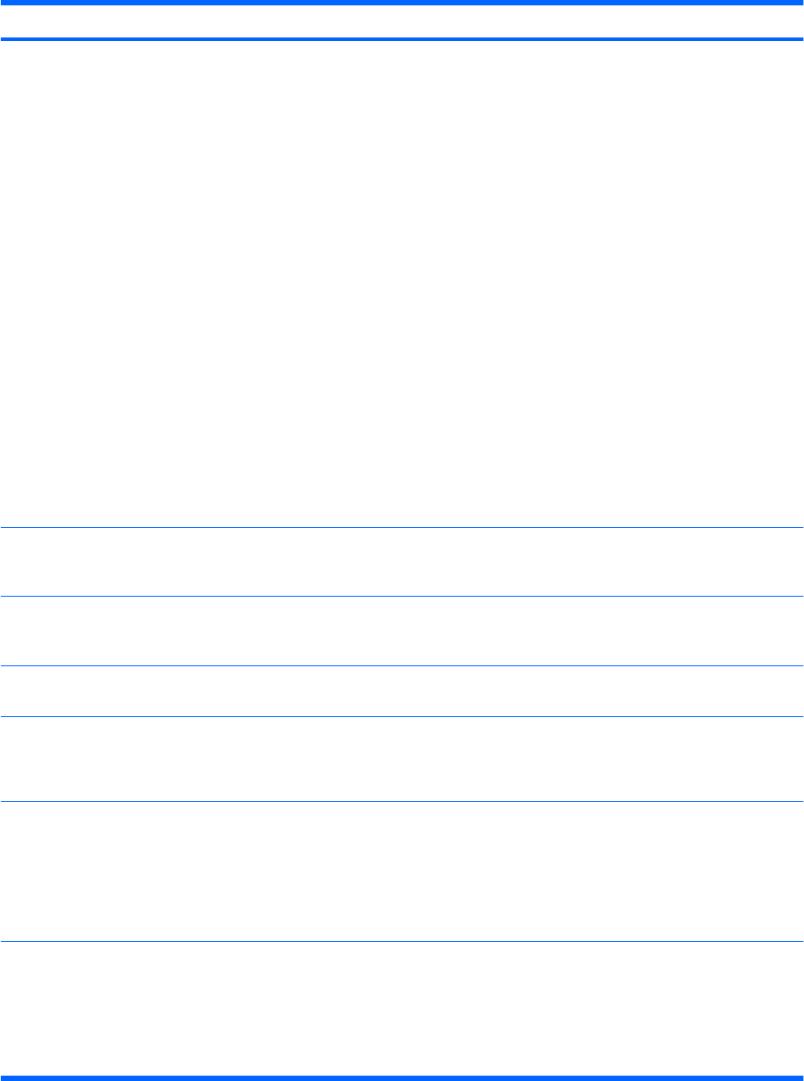 表 6 コンピュータ セットアップ(F10)ユーティリティ:[カスタム](Advanced)(上級ユーザ向け) (続き)