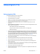 Setup-program (F10) Setup-program (F10) Använd setup-programmet (F10) för att göra följande: SVWW ● Ändra standardinställningar för systemet. ● Ange systemets datum och klockslag. ● Ställa in, visa, ändra eller verifiera systemets konfiguration såsom inställningar för processor, grafik, minne, ljud, lagring, kommunikation och inmatningsenheter. ● Ändra startordningen för startbara enheter som t.ex. hårddiskar, optiska enheter och USBflashenheter.