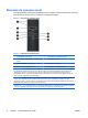 6. Enlevez la vis de sécurité de l’intérieur du cache avant. Figure C-7 Récupération de la vis de sécurité du cache avant 7. Repositionnez le cache avant. 8. Installez la vis dans le cache avant par l’avant du châssis. Le trou de vis se situe sur le côté gauche du châssis, à côté du compartiment de disque dur supérieur. Figure C-8 Installation de la vis de sécurité du cache avant 9. Remettez en place le panneau d’accès. 10. Reconnectez le cordon d’alimentation et mettez l’ordinateur sous tension.