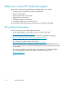 Before you contact HP Technical Support Be sure to have the following information available before you call HP: • • • • • • Technical support registration number (if applicable) Product serial number Product model name and number Applicable error messages Third-party hardware or software Operating system type and revision level For continuous quality improvement, calls may be recorded or monitored.