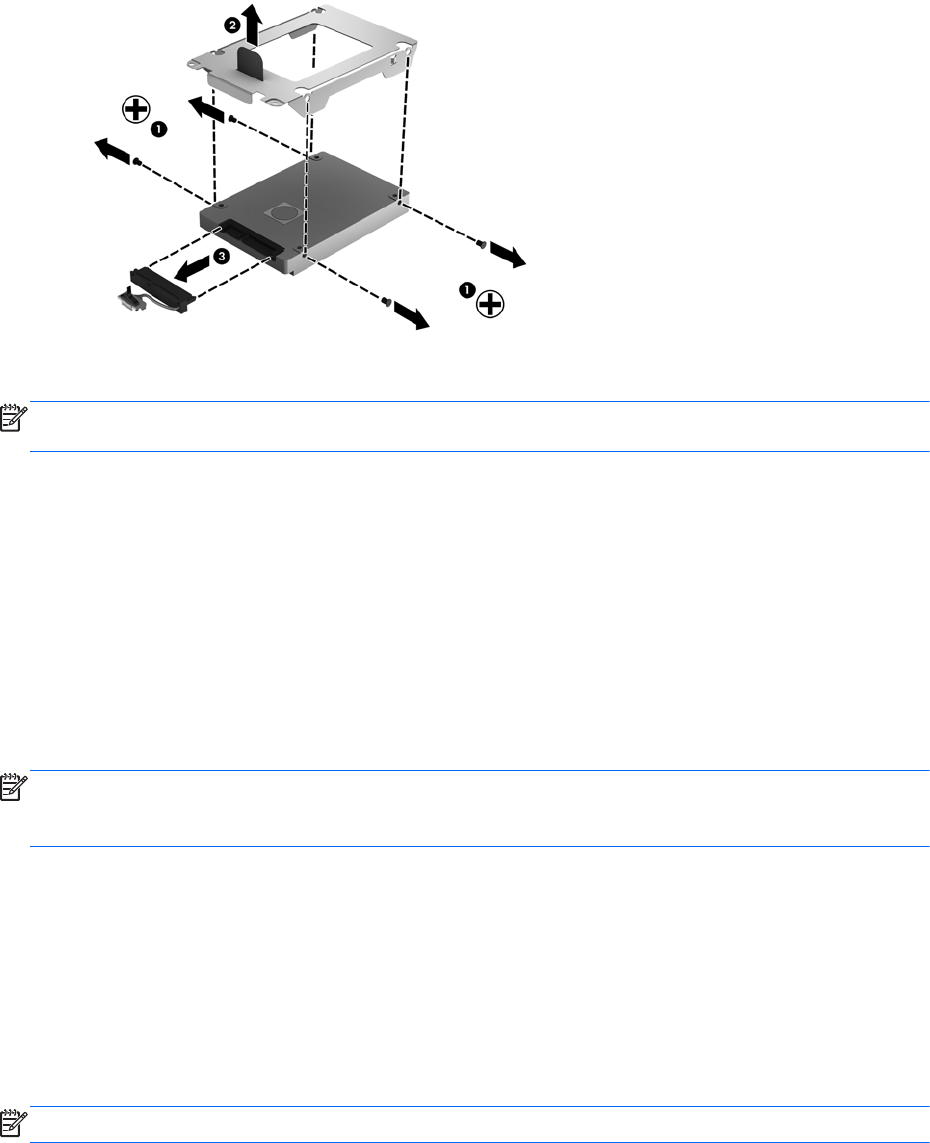 8. ハードドライブ ケーブルをハードドライブから外します(3)。