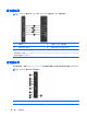 前面板组件 图 1-1 HP t610 瘦客户机(左)和 HP t610 PLUS 瘦客户机(右)前面板组件 (1) 电源按钮 (4) 线路输出(耳机)音频连接器 (2) 闪存活动 LED 指示灯 (5) 通用串行总线 (USB) 连接器(两个) (3) 线路输入(麦克风)连接器 有关详细信息,请参阅 http://h18004.www1.hp.com/products/quickspecs/QuickSpecs_Archives/QuickSpecs_Archives.html 中有关特定机型的 QuickSpecs。 后面板组件 有关详细信息,请访问 http://www.hp.