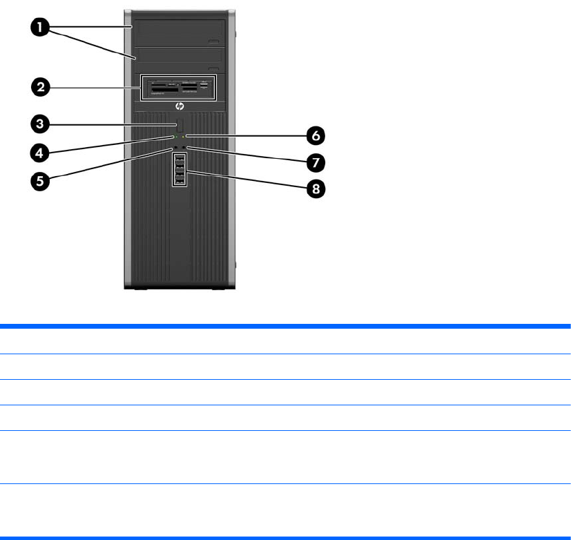 2 5,25-palčni bralnik medijskih kartic (dodatno) 6 lučka za napajanje