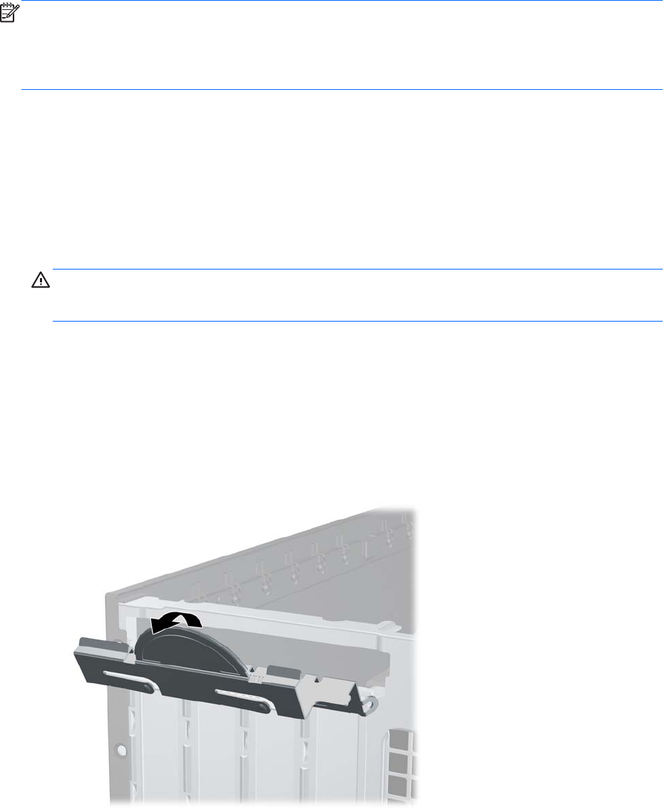8. Sprostite zaklep, s katerimi so pritrjeni pokrovi razširitvenih rež PCI, tako da dvignete zeleni
