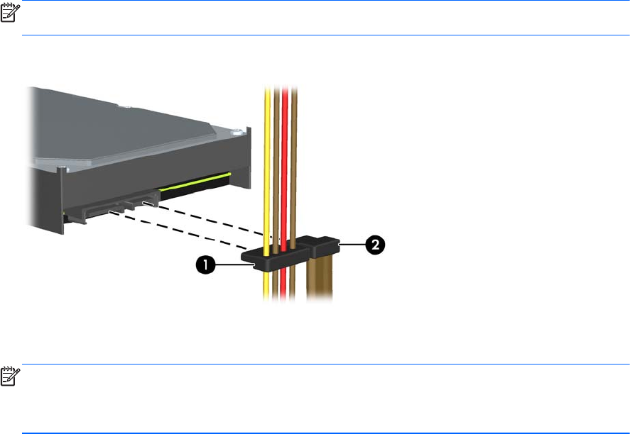 8. Napajalni kabel (1) in podatkovni kabel (2) priključite na hrbtno stran trdega diska.