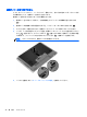 2. バッテリ ベイが手前を向くようにして置き、底面カバーのリリース ラッチを左方向にスライド