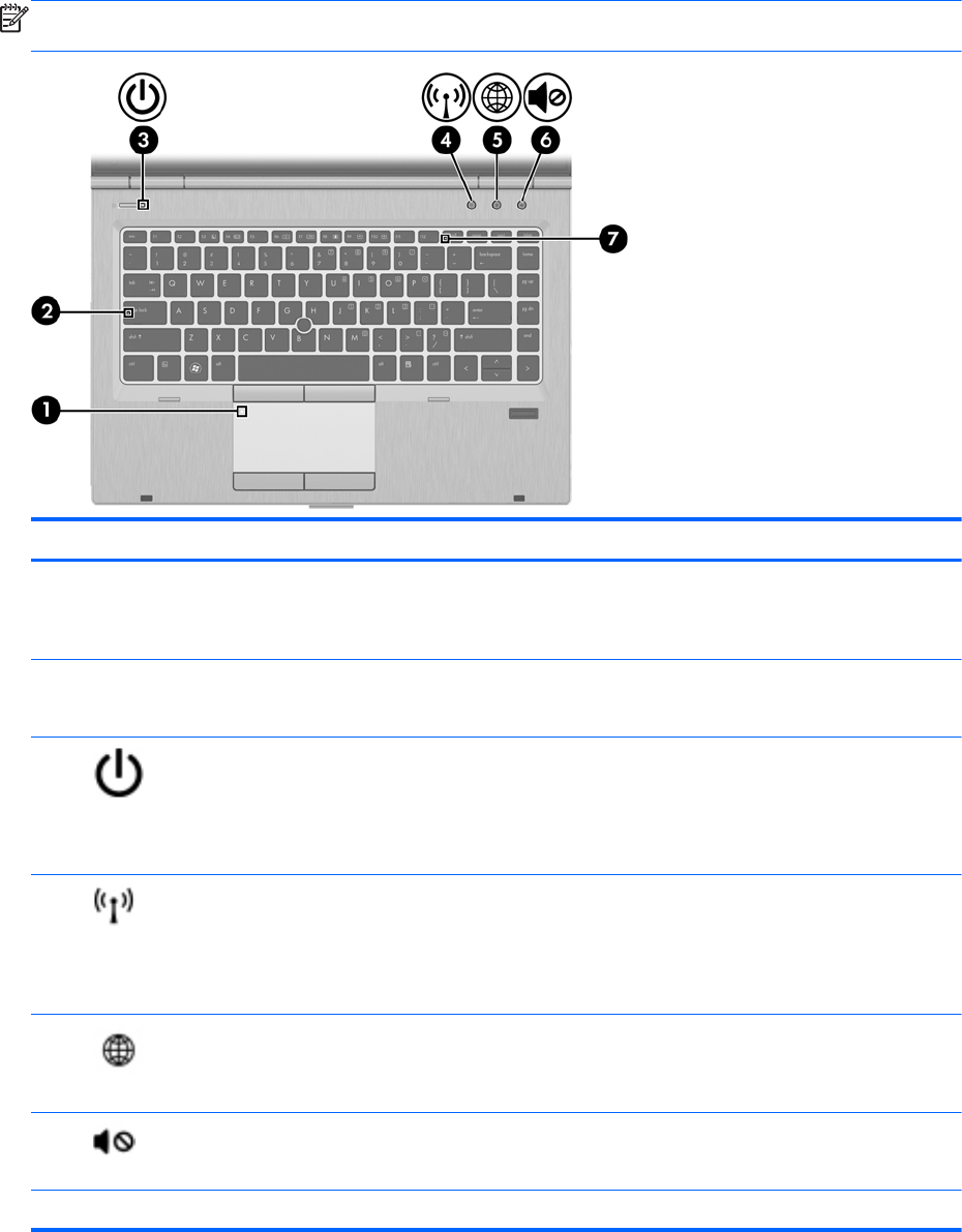 (1) Wskaźnik płytki dotykowej TouchPad ● Pomarańczowy: Płytka dotykowa TouchPad jest