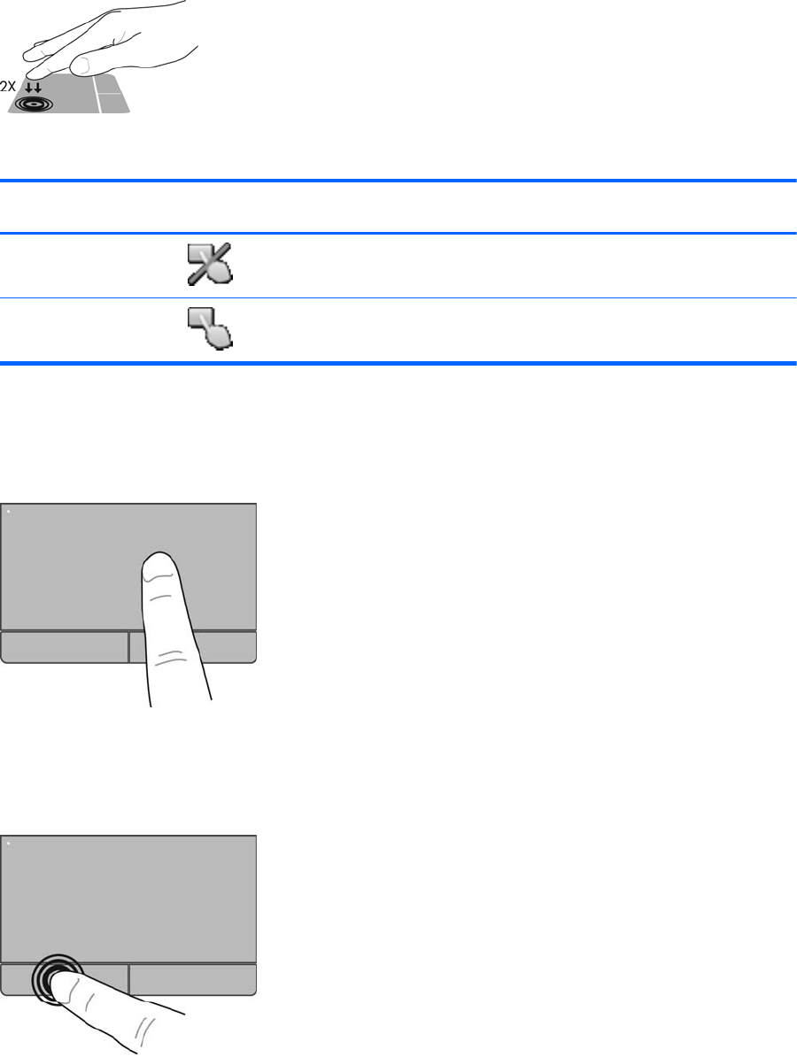Aby wyłączyć lub włączyć płytkę dotykową TouchPad, dotknij szybko dwukrotnie jej przycisku