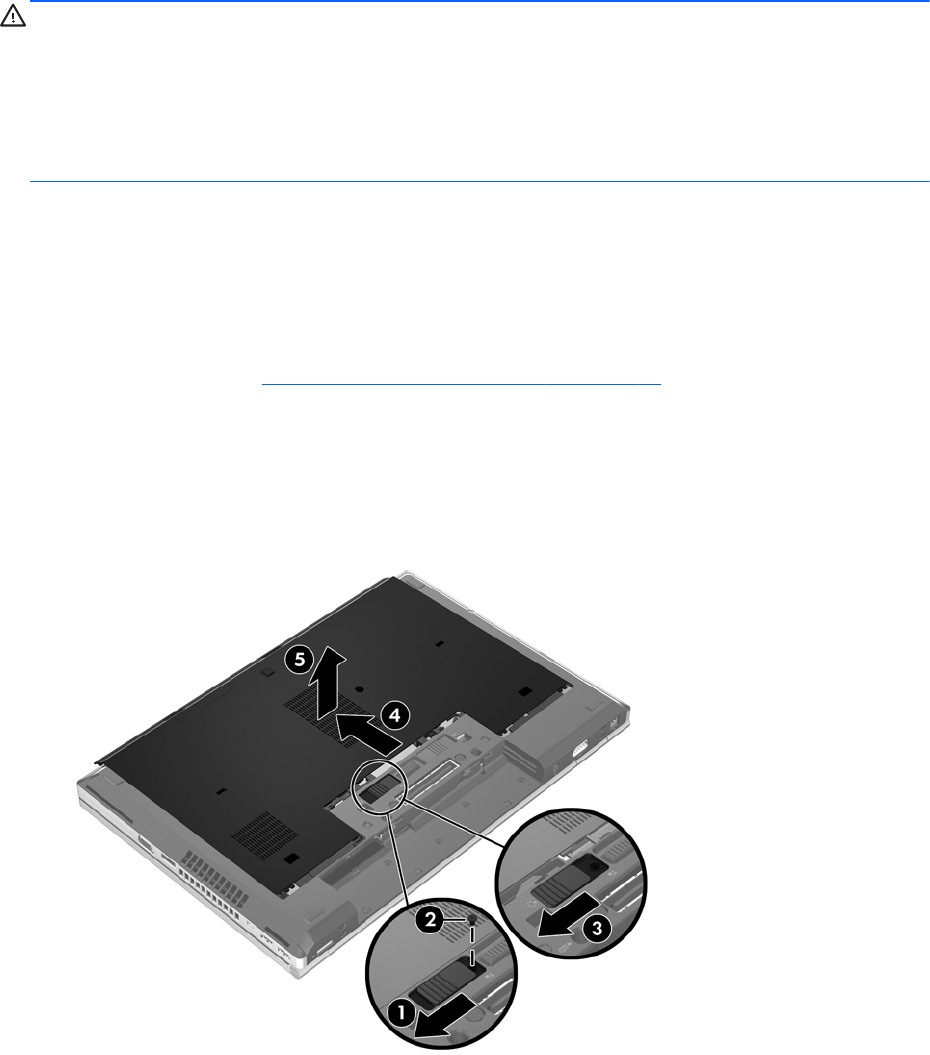 3. Przesuń pokrywę serwisową do przodu komputera (4) i unieś ją (5), aby zdjąć pokrywę z