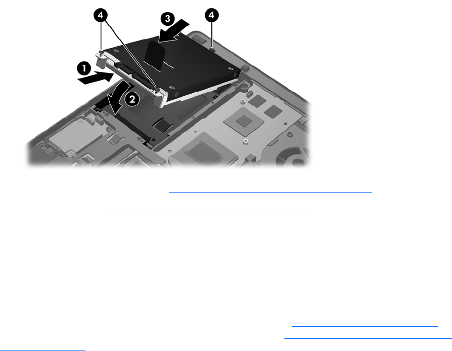1. Włóż dysk twardy do jego wnęki pod kątem (1) i połóż go płasko na dnie (2).