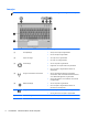 (1) Aan/uit-knop van het touchpad Hiermee schakelt u het touchpad in en uit.