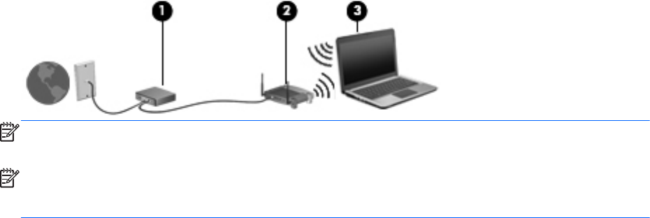 ● Modem pro širokopásmové připojení (DSL nebo kabelový) (1) a služba vysokorychlostního