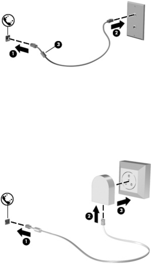 3. Zapojte adaptér kabelu modemu (3) do telefonního zásuvky.