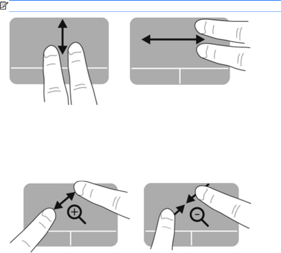 tak, že položíte dva prsty na zařízení TouchPad a potáhnete s nimi přes zařízení TouchPad směrem