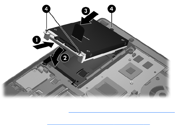 3. Utáhněte šrouby jednotky pevného disku (4).