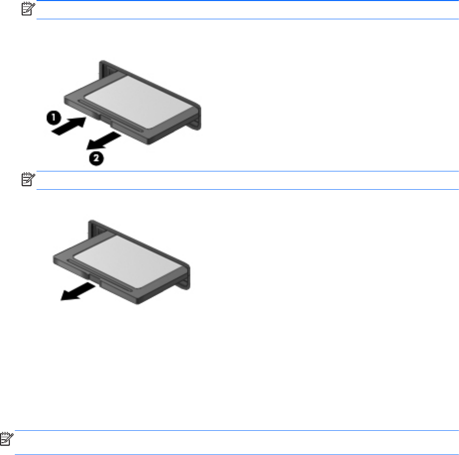 3. Zatlačte na kartu (1) a odeberte ji ze zásuvky (2).