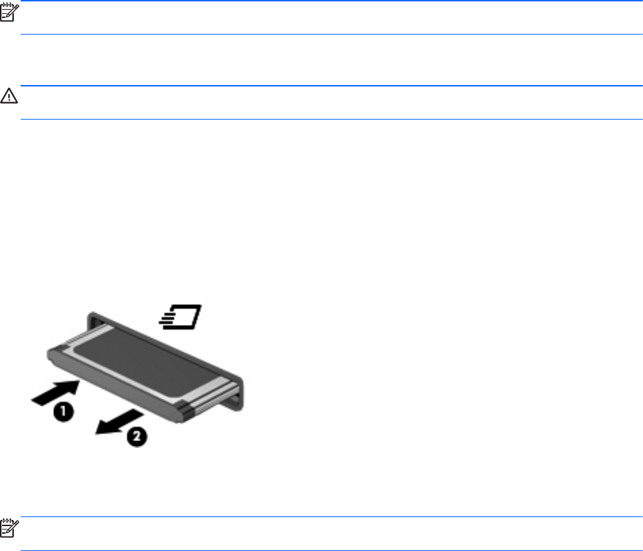 a. Pažljivo pritisnite karticu ExpressCard (1) kako biste je otključali.