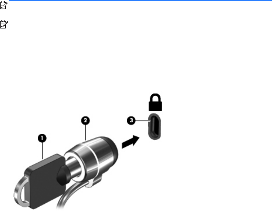 3. Umetnite lokot kabela u utor sigurnosnog kabela na računalu (3), a zatim lokot zaključajte