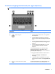 (1) Érintőtábla be- és kikapcsoló gombja Az érintőtábla be- és kikapcsolására szolgál.
