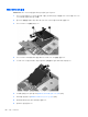 메모리 모듈 슬롯, 하드 드라이브, 규정 레이블 및 기타 구성 요소에 액세스하려면 아래쪽 덮개를 분리