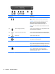 Port för extern bildskärm Ansluter en extern VGA-bildskärm eller projektor.