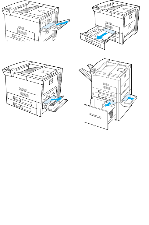 용지함 2, 3 및 선택 사양인 2 x 500장 용지함에 용 지 넣기 (용지함 4 및 5