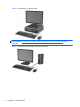 1 Funkcije izdelka Funkcije standardne konfiguracije Funkcije se lahko razlikujejo glede na model računalnika. Za popoln seznam strojne in programske opreme, nameščene v računalniku, zaženite diagnostični program (priložen samo nekaterim modelom računalnikov). Slika 1-1 Konfiguracija računalnika s prilagodljivim ohišjem ministolp OPOMBA: Računalnik HP Compaq s prilagodljivim ohišjem ministolp zlahka spremenite v namiznega.
