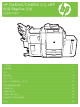 更換釘書針匣 1 打開釘書機擋門。 2 要取出釘書針卡匣,請將釘書針卡匣前方的綠色手柄 向前拉,然後筆直拉出釘書針卡匣。 3 要從卡匣中取出釘書針匣,請壓住兩側的箭頭再拉 起,取出釘書針匣。 4 將新釘書針匣插入釘書針卡匣。將釘書針匣筆直向下 推,直至卡入定位。 www.hp.