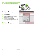 Udskiftning af hæftepatroner 1 Åbn dækslet til hæfteren. 2 Fjern hæftekassetten ved at trække det grønne håndtag, som er placeret foran kassetten, frem, og derefter trække kassetten lige ud. 3 Fjern hæftepatronen fra kassetten ved at trykke ind ved pilene på hver side og derefter trække op for at frigøre patronen. 4 Indsæt den nye hæftepatron i hæftekassetten. Skub patronen lige ned, til den klikker på plads. www.hp.