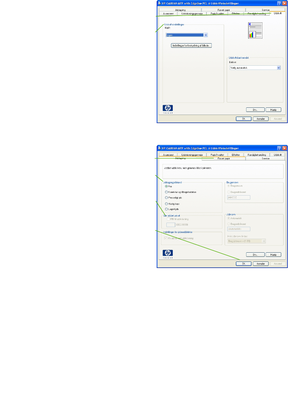 tilgængelige udskriftsindstillinger afhænger af, hvilken
