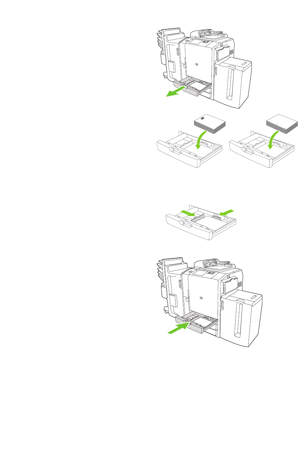 2 Ilæg papiret i hele pakker ad gangen. Placer altid den