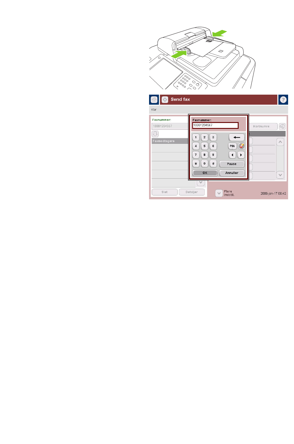 brug popuptastaturet til at indtaste faxnummeret. Tryk