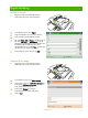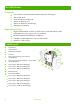 Byta häftkassetter 1 Öppna häftningsenhetens lucka. 2 Ta ut häftkassetten genom att dra den gröna spaken på häftkassettens framsida utåt och dra sedan häftkassetten rakt ut. 3 Ta ut häftpatronen från kassetten genom att trycka in vid pilarna på sidorna och sedan dra uppåt så att häftpatronen lossar. 4 För in den nya häftpatronen i häftkassetten. Skjut häftpatronen rakt nedåt tills den låses på plats. www.hp.